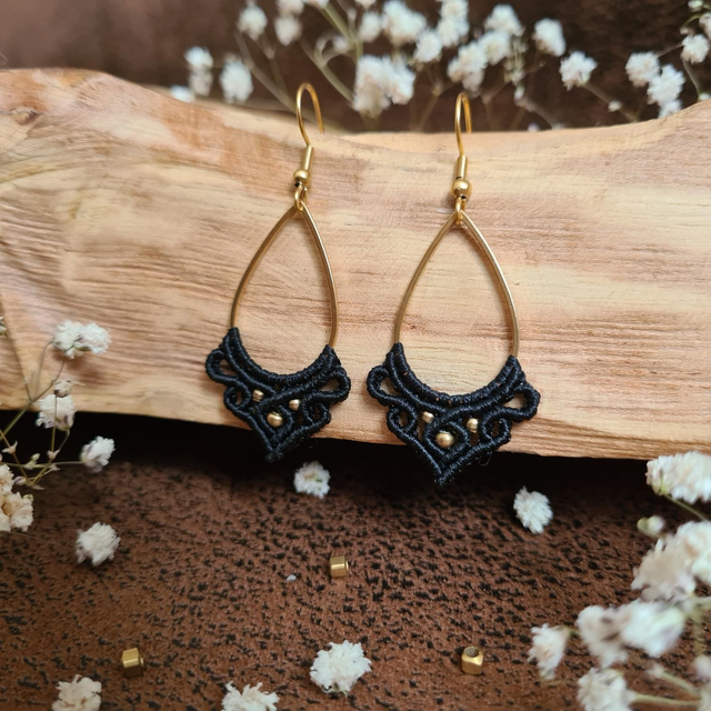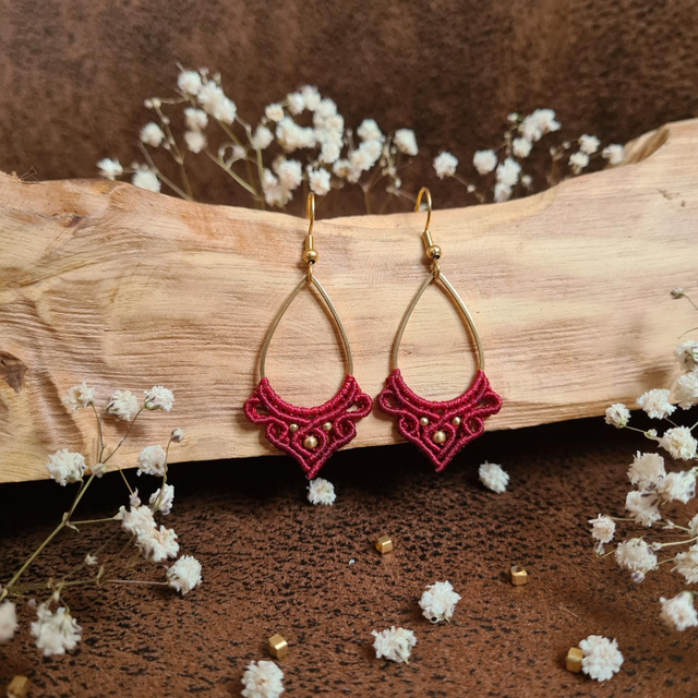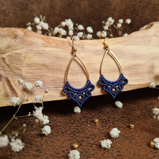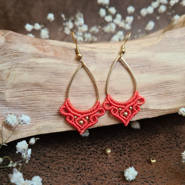 Boucles d'oreilles Arya dorées pendantes légères en macramé