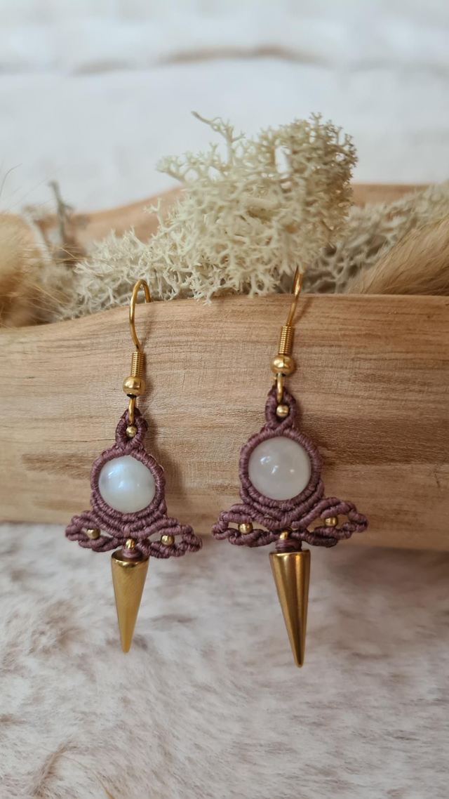 Pendentif micro-macramé accompagné de pierre de lune, l'amour doux et piquant