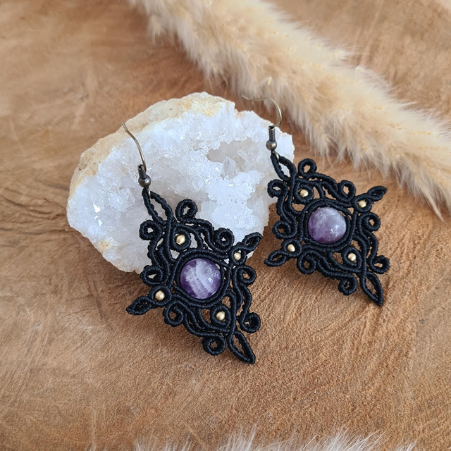 Boucles d'oreilles en macramé chic et élégante d'un style bohème, hippie.