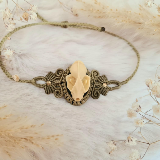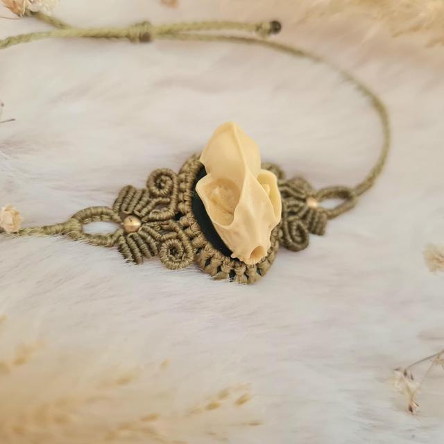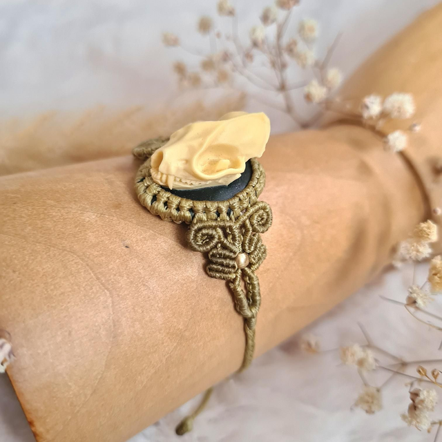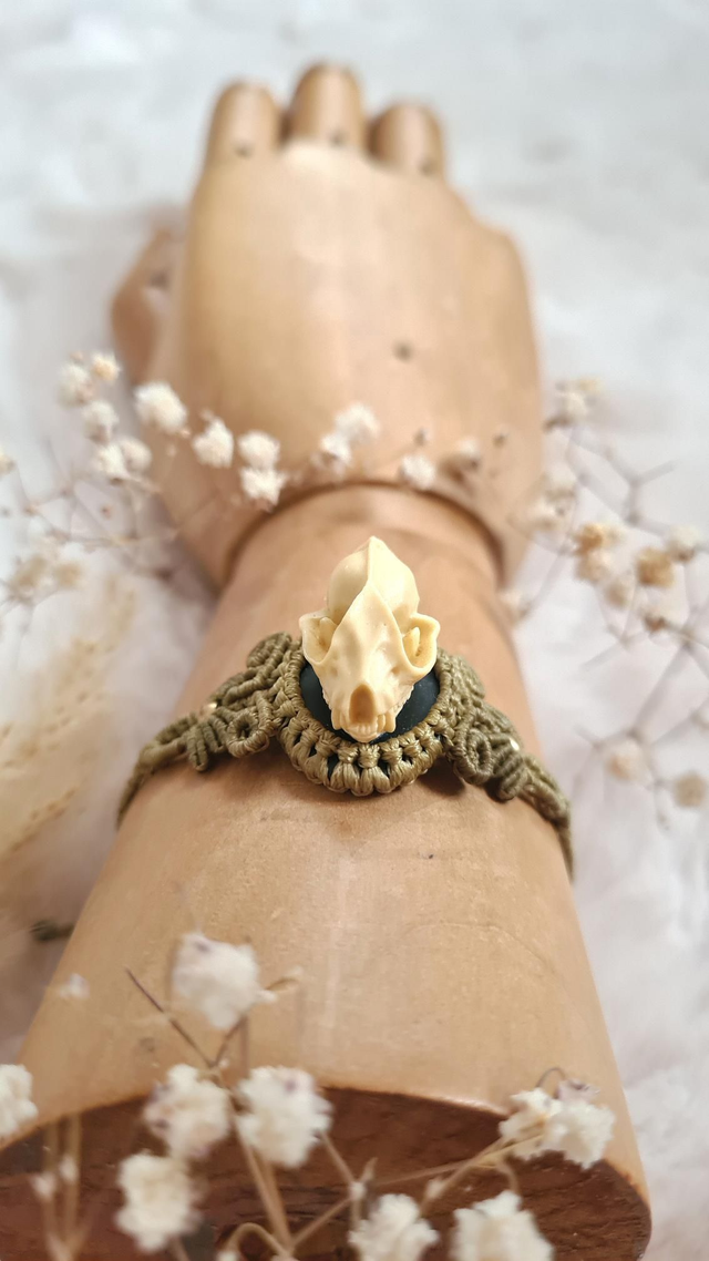 Bracelet en micro macramé avec crâne de chauve-souris en résine