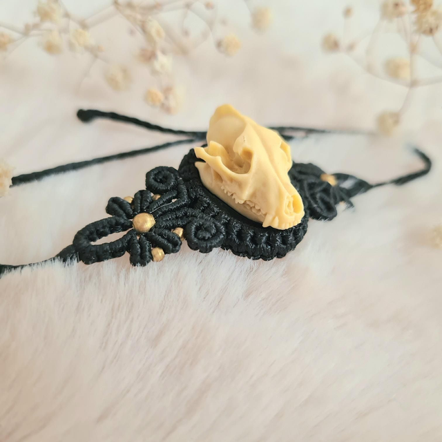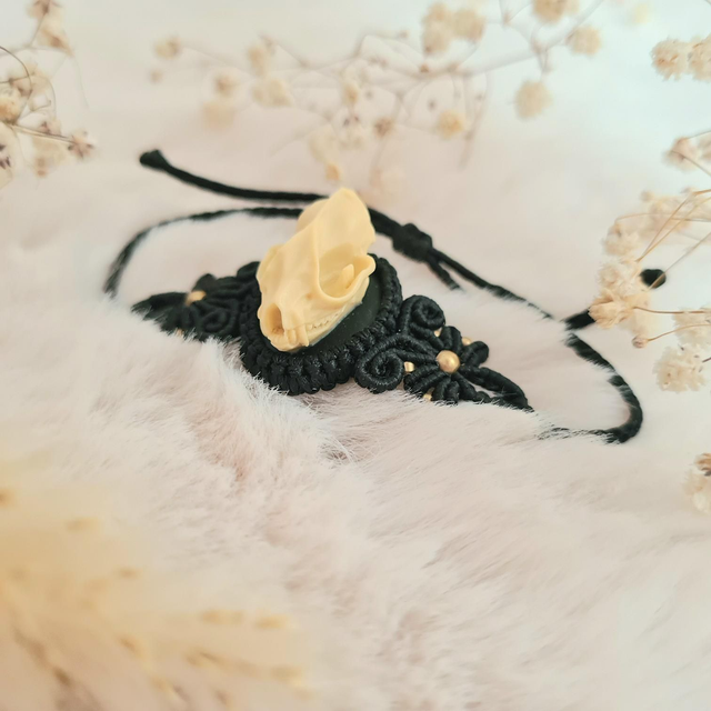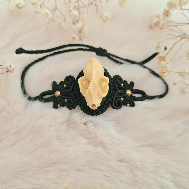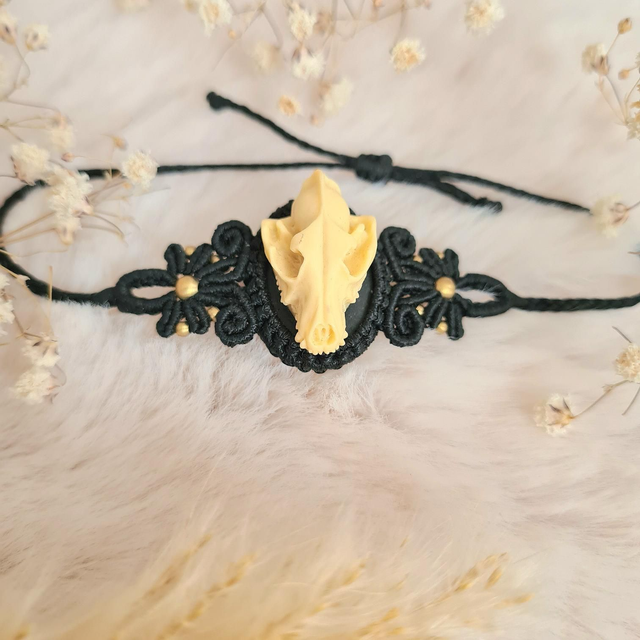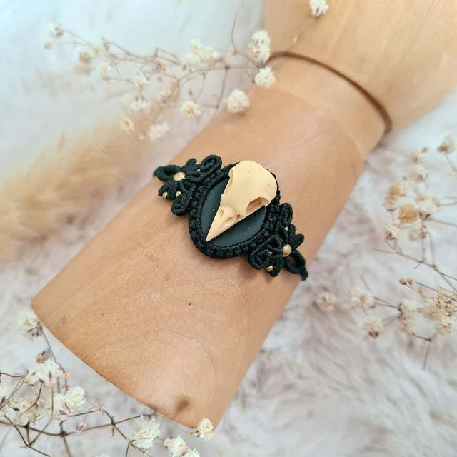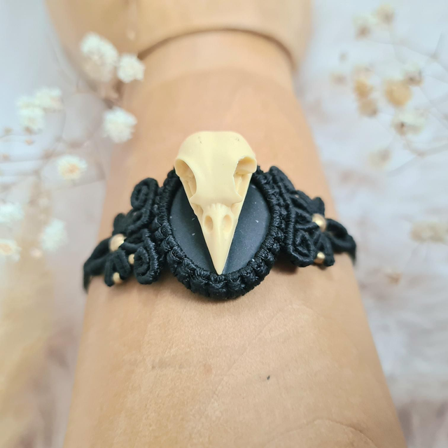 Bracelet en micro macramé avec crâne en résine