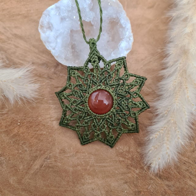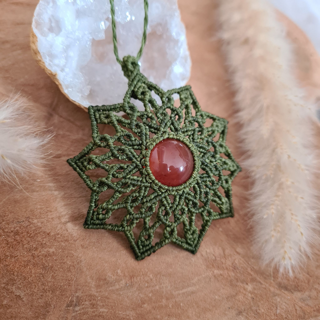 Pendentif fait en micro macramé de style bohème, baroque, elfique, médiéval.