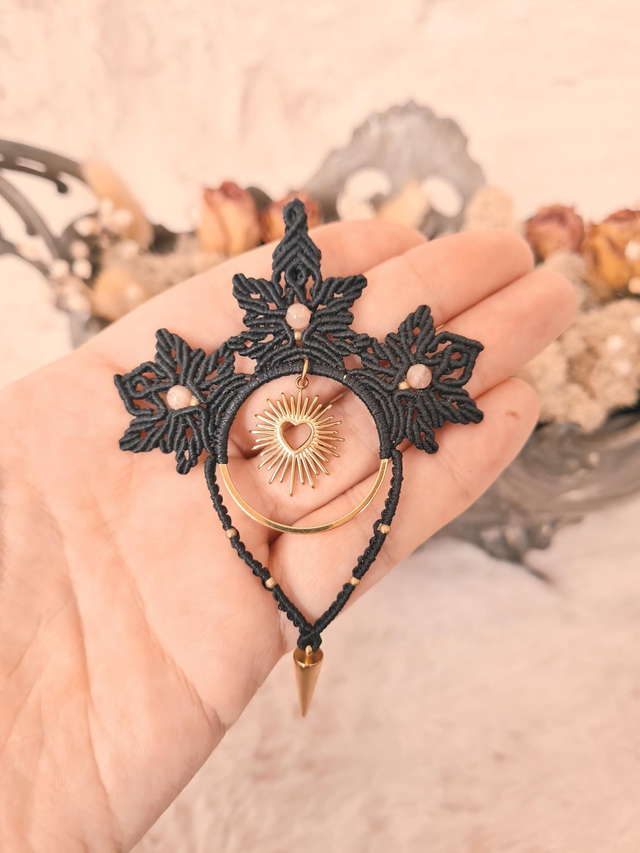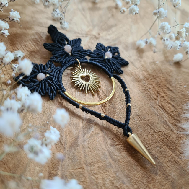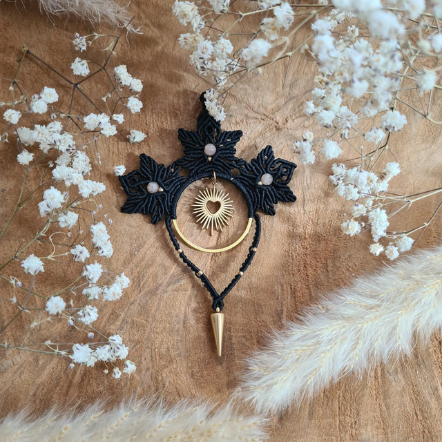 Pendentif micro-macramé accompagné de pierre de lune, l'amour doux et piquant