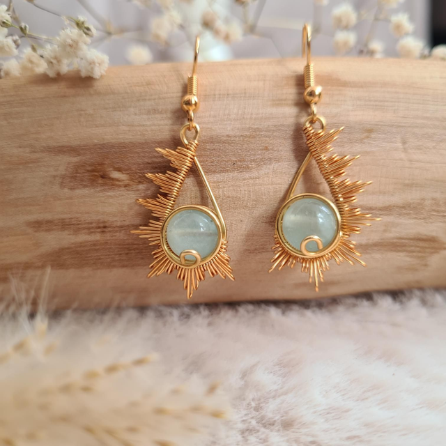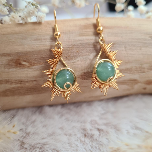 Sunmy, Boucles d'oreilles soleil pendantes serties de pierres naturelles