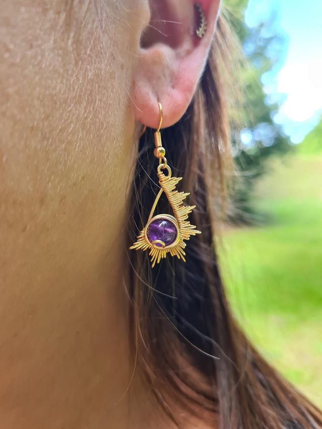 Boucles d'oreilles représentant le soleil accompagné d'une pierre semi précieuse, ce bijou est puissant et élégant.