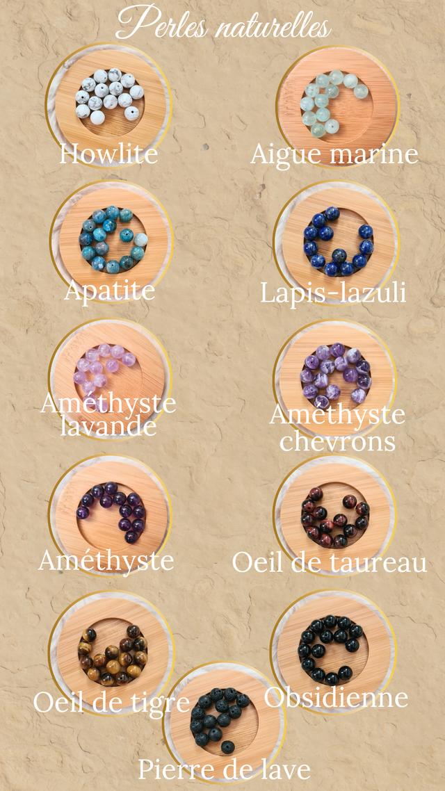 Etant de la fabrication artisanale, la dimension peut varier de quelques millimètres et concernant les perles naturelles il peut y avoir de légères variations de couleurs.