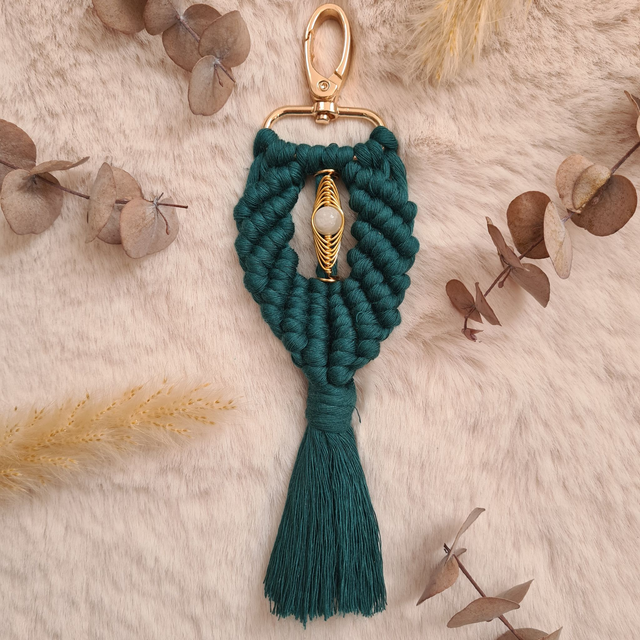 Porte clé / Bijou de sac Foïa en macramé avec pierre naturelle